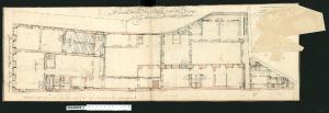 - NOTIZIE STORICO CRITICHE Nell'"Indice" del tomo nel quale era rilegato il disegno viene definito: "Pianta riformata del Palazzo / per il Conte Molara in Vienna nella / strada delli Sig.ri in un luogo molto / infelice mandata dall'Haya da / da Domenico Martinelli a 12 7bre 1695".\nIl progetto di ristrutturazione dei palazzo Mollard-Clary, per il conte Ferdinand Mollard, fu sicuramente impostato da Domenico Martinelli prima della sua partenza da Vienna alla fine del 1694, in quanto, come testimonia l'iscrizione autografa sul verso del presente disegno, il 12 settembre 1695 Martinelli inviò i disegni a Vienna da L'Aia. \nIl principio che guida l'intervento di Martinelli è il miglior utilizzo dello spazio offerto dalla stretta particella su cui sorge l'edificio. Egli inserisce quindi sulla base di una vecchia pianta che raffigura le preesistenze, evidenziate con muri colorati in rosso e giallo, le nuove murature da costruire in colore grigio e delle annotazioni sulle modifiche delle funzioni da apportare secondo le esigenze espresse dal cliente.\nI corpi di fabbrica regolarizzati si affacciano sui due cortili (di cui uno più ampio), di nuova formazione. Le modifiche essenziali a questo piano, oltre ai nuovi locali intorno al cortile minore, riguardano la disposizione delle scale, compreso lo scalone di rappresentanza. Sul lato destro del foglio sono inoltre applicate due aggiunte che sovrapposte al disegno indicano delle varianti alla disposizione già proposta.