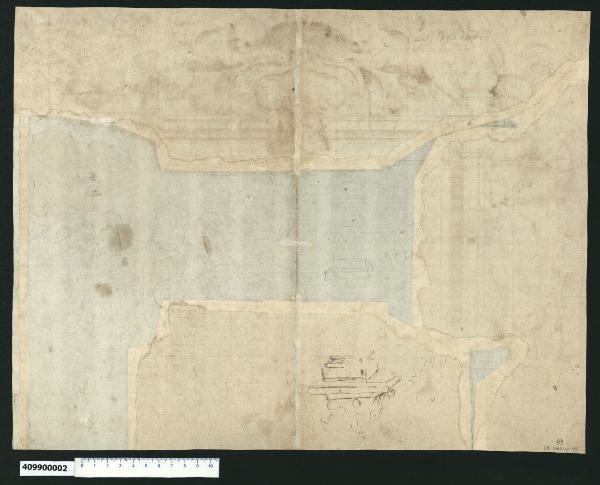 - NOTIZIE STORICO CRITICHE Il verso del disegno, oltre a riportare l'iscrizione probabilmente di Sardini che indica la paternità del "Cav. Guidotti" del disegno sul recto, presenta due schizzi di studio, uno a inchiostro e uno a grafite rappresentanti elementi architettonici che non sembrano riferirsi alla cornice ivi raffigurata. Si propone comunque un'incerta datazione contemporanea al disegno del recto.