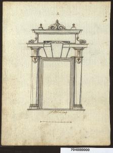 - NOTIZIE STORICO CRITICHE Nell'"Indice" del tomo nel quale era rilegato, il disegno viene definito: "Porta con lo stesso nome".\nIl presente foglio è l'unico del gruppo di disegni di Giovan Battista Mola contrassegnato con la sigla "A". Secondo Antinori (1991, p. 35) potrebbe trattarsi di una rielaborazione grafica del portale della villa "del Leone" di Galeazzo Alessi a Perugia, visto dal Mola durante il suo viaggio in Umbria, verso la metà degli anni Venti del XVII secolo, in occasione del suo soggiorno a Spoleto per la realizzazione della cappella delle SS. Icone nel duomo.