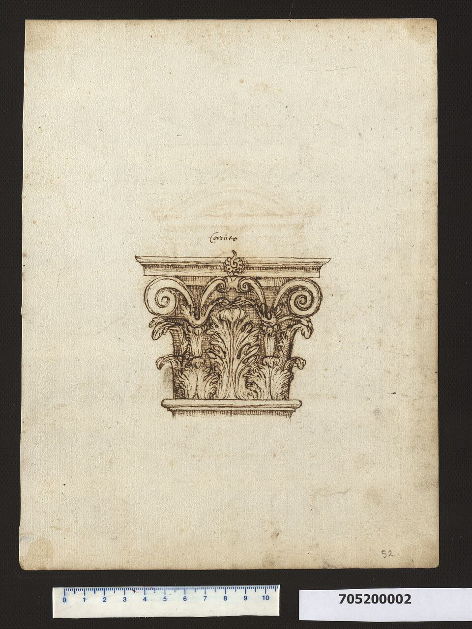 - NOTIZIE STORICO CRITICHE Il foglio raffigura un capitello corinzio con due corone di foglie d'acanto e caulicoli che reggono un abaco decorato al centro da un piccolo fiore.