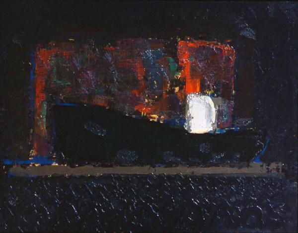 - NOTIZIE STORICO CRITICHE Quest'opera, insieme ad altre di soggetto navale o comunque marino, nasce dalle suggestioni visive di un viaggio in Grecia. Attraverso un procedimento pittorico ormai consueto, Congdon raffigura con una grande sintesi di elementi i suoi temi più cari: il mare, le navi, gli insediamenti urbani. Sono soggetti che vengono resi attraverso spatolate informali di colore scuro e illuminati da improvvisi bagliori, dove il segno-colore diventa protagonista assoluto dell'opera. La nitidezza delle direttrici delle spatolate e la purezza con cui viene steso il colore, anche quando questo venga a raggrumarsi o ispessirsi, generano nello spazio pitorico campi cromatici che si intersecano e si sovrappongono secondo diversi andamenti ritmici oppure, elemento evidente del dipinto in esame e valorizzato dal contrasto con i neri, diventano motivo per un puro divertissement coloristico.