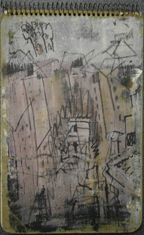 - NOTIZIE STORICO CRITICHE Congdon si è raramente dedicato al disegno come forma espressiva autonoma, così la mole di disegni raccolti sui taccuini non sono altro che appunti visivi presi durante numerosi viaggi. In questo senso non è possibile, se non raramente, assegnare al singolo disegno un'opera finita direttamente corrispondente, così questi disegni non vengono nemmeno ad essere schizzi preparatori. La sommatoria di tutti i disegni relativi a un luogo danno origine a una serie di dipinti che non hanno un corrispettivo oggettivo nei disegni stessi. Tutto questo giustifica la presenza degli appunti all'interno delle immagini (colori, sfumature e spiegazioni di vario genere). Nel caso probabile veduta di Napoli eseguita durante un viaggio del 1951.