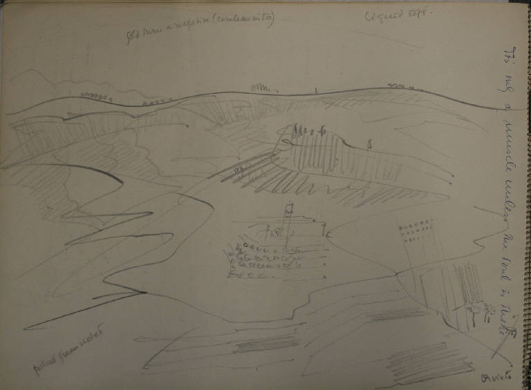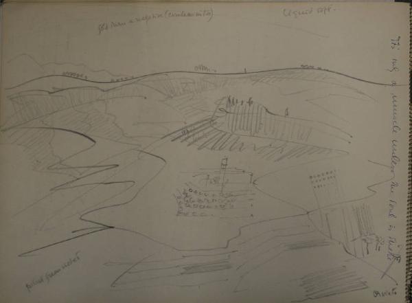 - NOTIZIE STORICO CRITICHE Congdon si è raramente dedicato al disegno come forma espressiva autonoma, così la mole di disegni raccolti sui taccuini non sono altro che appunti visivi presi durante numerosi viaggi. In questo senso non è possibile, se non raramente, assegnare al singolo disegno un'opera finita direttamente corrispondente, così questi disegni non vengono nemmeno ad essere schizzi preparatori. La sommatoria di tutti i disegni relativi a un luogo danno origine a una serie di dipinti che non hanno un corrispettivo oggettivo nei disegni stessi. Tutto questo giustifica la presenza degli appunti all'interno delle immagini (colori, sfumature e spiegazioni di vario genere). Nel 1954 Congdon viaggiando per l'Italia dedica un taccuino al passaggio tra Assisi e Orvieto. Vediamo così susseguirsi disegni di architetture assisiate (San Francesco, San Rufino e Santa Chiara) insieme ai paesaggi della campagna dell'alto Lazio.
