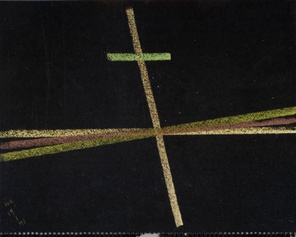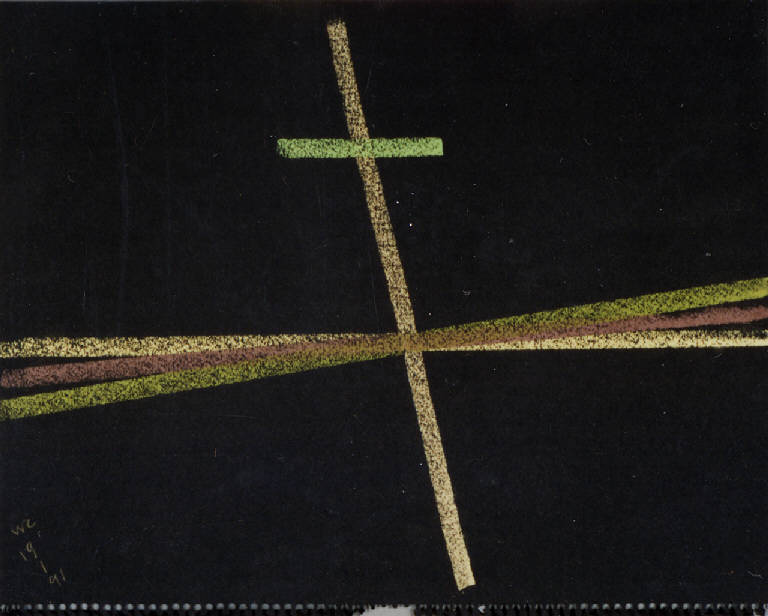 - NOTIZIE STORICO CRITICHE L'osservazione inesausta e quotidiana del paesaggio antistante lo studio trova nei pastelli, rispetto alla pittura, una via rappresentativa del tutto particolare. Gli elementi del paesaggio vengono infatti ridotti all'estremo fino a portare la composizione ad un'apparente astrazione. Tuttavia è possibile riconoscere quegli stessi elementi che caratterizzano i paesaggio della Bassa milanese anche più descrittivi: cielo, terra, canale e filare di alberi. Questi elementi chiave vengono riassunti in un solo segno che diventa la traccia luminosa di ciò che rappresenta. Il resto della composizione, il senso spaziale e atmosferico della stessa, è affidato al colore del supporto stesso che viene ravvivato dai segni ortogonali, curvi o obliqui che lo percorrono.