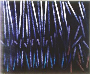 - NOTIZIE STORICO CRITICHE Altra variante del paesaggio è data da una serie di pastelli in cui l'immagine viene descritta mediante una cortina di segni paralleli o quasi, organizzati di volta in volta secondo un'economia differente: ora i segni si fanno più radi e lasciano spazio al fondo e al suo colore, che diventa un elemento più evidentemente costitutivo dell'immagine, ora i segni si fanno più fitti, fino quasi a nascondere il fondo lasciandone intravedere solo alcune linee sottili. C'è anche una differenza ritmica all'interno dell'utilizzo dei segni stessi: una più rigorosa data dall'utilizzo esclusivo di linee parallele, l'altra invece più "melodica" data dall'utilizzo di segni più brevi e ondulati. Di norma in tutti questi casi il paesaggio è dato dal dialogo fra i due elementi costitutivi cielo e terra o dal monologo di uno solo di questi elementi.