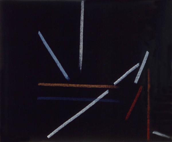 - NOTIZIE STORICO CRITICHE L'osservazione inesausta e quotidiana del paesaggio antistante lo studio trova nei pastelli, rispetto alla pittura, una via rappresentativa del tutto particolare. Gli elementi del paesaggio vengono infatti ridotti all'estremo fino a portare la composizione ad un'apparente astrazione. Tuttavia è possibile riconoscere quegli stessi elementi che caratterizzano i paesaggio della Bassa milanese anche più descrittivi: cielo, terra, canale e filare di alberi. Questi elementi chiave vengono riassunti in un solo segno che diventa la traccia luminosa di ciò che rappresenta. Il resto della composizione, il senso spaziale e atmosferico della stessa, è affidato al colore del supporto stesso che viene ravvivato dai segni ortogonali, curvi o obliqui che lo percorrono.