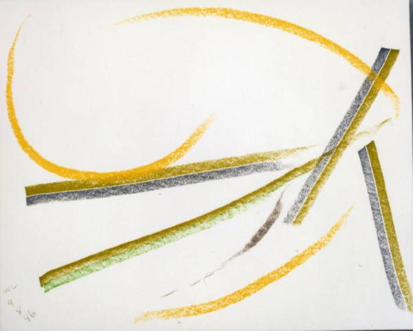 - NOTIZIE STORICO CRITICHE L'osservazione inesausta e quotidiana del paesaggio antistante lo studio trova nei pastelli, rispetto alla pittura, una via rappresentativa del tutto particolare. Gli elementi del paesaggio vengono infatti ridotti all'estremo fino a portare la composizione ad un'apparente astrazione. Tuttavia è possibile riconoscere quegli stessi elementi che caratterizzano i paesaggio della Bassa milanese anche più descrittivi: cielo, terra, canale e filare di alberi. Questi elementi chiave vengono riassunti in un solo segno che diventa la traccia luminosa di ciò che rappresenta. Il resto della composizione, il senso spaziale e atmosferico della stessa, è affidato al colore del supporto stesso che viene ravvivato dai segni ortogonali, curvi o obliqui che lo percorrono.