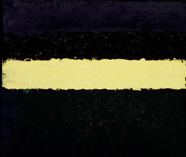 - NOTIZIE STORICO CRITICHE L'opera è giocata sulla consueta visione simultanea frontale/verticale che accosta gli elementi basilari del paesaggio. In questa veduta, forse notturna data la gamma particolarmente scura dei colori, si staglia la striscia gialla accesa che attraversa la metà del dipinto, come se alla veduta naturale del campo d'orzo Congdon sovrapponesse con essa un elemento simbolico che trasforma il colore dell'orzo in pura luce.