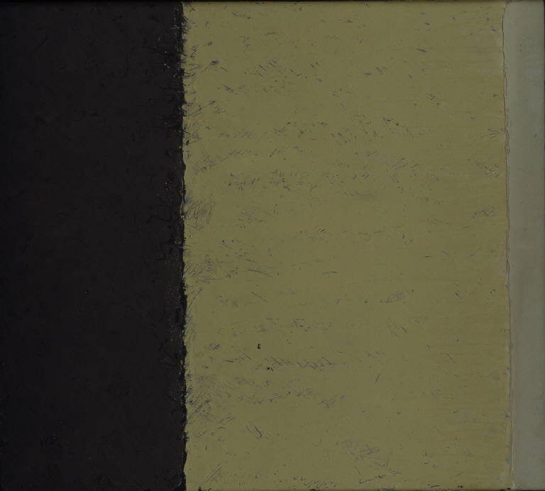 - NOTIZIE STORICO CRITICHE La composizione riprende l'ormai classico orizzonte veritcale di Congdon mentre l'immagine rimane suddivisa in tre bande verticali che, oltre alle due descritte nel titolo, "Stoppie-Terra", comprendono anche lungo il bordo all'estrema destra una striscia grigio chiara di cielo. Il lavoro del punteruolo con cui sono descritte le stoppie si intravede sotto una seconda mano di spatola.