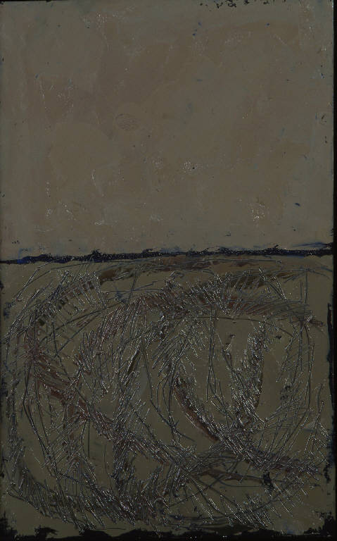 - NOTIZIE STORICO CRITICHE Congdon ha già affrontato il tema del Glicine nel 1983 e tornerà ad affrontarlo nel 1988 e '89. In entrambi i casi si tratta però della pianta lussureggiante, nel pieno della sua fioritura, solo nel dicembre del 1987 il Glicine (1 e 2) è rappresentato d'inverno, in quell'apparente morte che lo spoglia della sua bellezza e del suo profumo. La pianta occupa la parte bassa del quadro, non dissimile a un rovo qualunque, schiacciata dal cielo grigio che la sovrasta. Solo con il suo risveglio riavrà la forza di riconquistare tutto il piano nella tipica composizione all over the il pittore sceglie per rappresentare il bel rampicante.