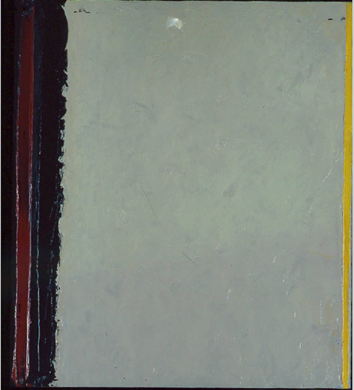 - NOTIZIE STORICO CRITICHE Il dipinto accosta tre elementi tra il naturalistico e il simbolico secondo un'operazione ideativa non inedita nell'opera di Congdon. A un dato paesaggistico che pare sempre necessario come spunto di partenza, il cielo, vengono accostati in maniera sintetica e segnica due elementi opposti: uno più terrestre, il sangue, evocato da una spatolata spessa rosso cupo su un fondo nero sulla sinistra, e uno più "celeste" del giallo come colore della luce collocato invece all'estrema destra del quadro.