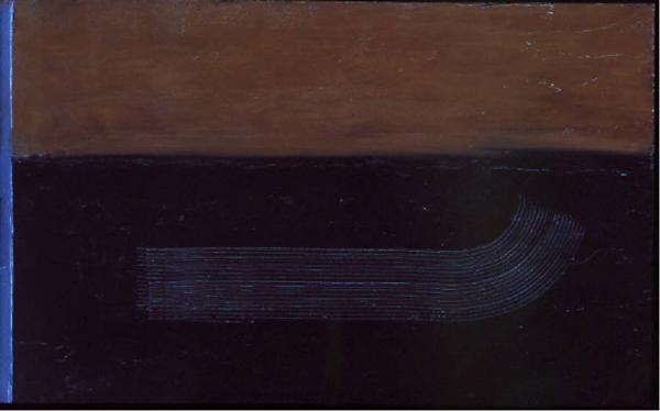 - NOTIZIE STORICO CRITICHE Tipica di tutto il corpus dei paesaggi di questo periodo è la compresenza di più piani prospettici così che gli elementi basilari del panorama (cielo e terra) si trovino ad avere contemporaneamente più valenze. In questo caso particolare nella notte la differenza tra cielo e terra è più difficilmente tracciabile. Non abbiamo quindi una precisa descrizione del paesaggio quanto dei suggerimenti di immagini in cui la terra diventa notte, nell'impercettibile trasmutare dalla fascia sottostante più scura a quella superiore leggermente più chiara, oppure nella sottilissima banda verticale sulla sinistra di colore azzurro-blu che potrebbe diventare il cielo, spesso di notte più chiaro della stessa terra sulla destra.