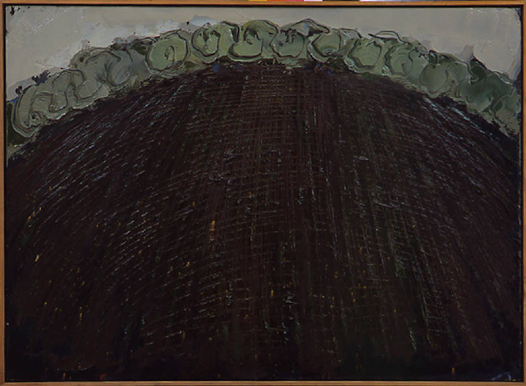 - NOTIZIE STORICO CRITICHE L'opera, stranamente senza titolo, può chiaramente essere avvicinata alla serie di quadri in cui è rappresentata la dinamica generativa della terra. Una fitta rete di incisioni incrociate, impreziosita da punte d'oro, dà al dipinto un'abbozzo prospettico deformato da una sorta di gonfiore che culmina nella curvatura accentuata dell'orizzonte, chiuso da un filare di alberi.