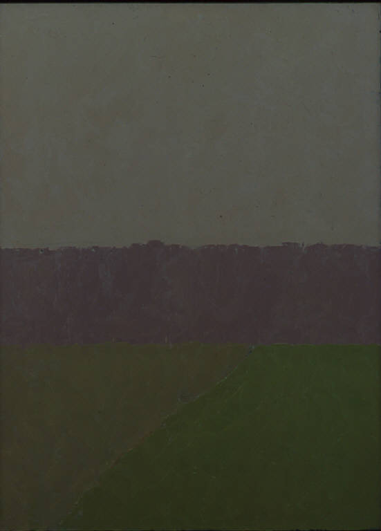 - NOTIZIE STORICO CRITICHE Le consuete bordature scure del campo tendono a scomparire in "Campo G., 3", dove le masse della terra e del cielo si toccano fin quasi a fondersi, complice anche la minima differenza di tono. La visione spaziale, pure nel suo estremo rigore, lascia sconcertati: è impossibile soffermarsi su di un particolare dato che l'occhio è sempre sbalzato verso la totalità del pannello dall'asimmetria delle masse.