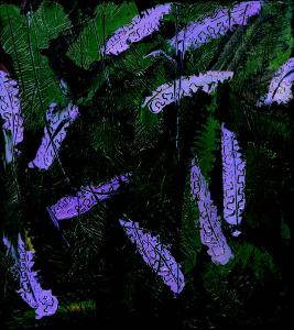 - NOTIZIE STORICO CRITICHE Nella primavera dell'83 cadono una serie di opere di soggetto floreale: una novità nel corpus della pittura congdoniana che testimonia la varietà dei motivi e delle scelte linguistiche che la connota, e che rende possibile il trascorrere delle rigorose geometrie dei campi alla libertà nel tocco di spatola e nell'incisione qui dimostrate. Nell'aprile dell'89 Congdon torna al motivo floreale con Glicine e Violette. Rispetto all'archetipo dell'83 l'attenzione dell'artista privilegia ora alla percedente essenzialità un più rigoroso e affollato tessuto, secondo il più volte ricorrente assetto della composizoine all-over, in cui il pannello viene uniformemente ricoperto di macchie di colore e percorso da preziose calligrafie incise nel pigmento con la punta della spatola. Il tessuto dell'opera è ulteriormente arricchito dai vuoti che lasciano trasparire il fondo nero. Quest'ultimo, come osserva Licht (1992, p. 57), "traduce l'oscurità feconda dell'imperscrutabile grembo della terra, dal quale germogliano i fiori e il loro fogliame. Il nero, una volta nemico del colore nei quadri di Congdon, espressione del nihil assoluto, che corrompe ed estingue, ora è forza cromatica propria, ha funzione attiva e positiva".
