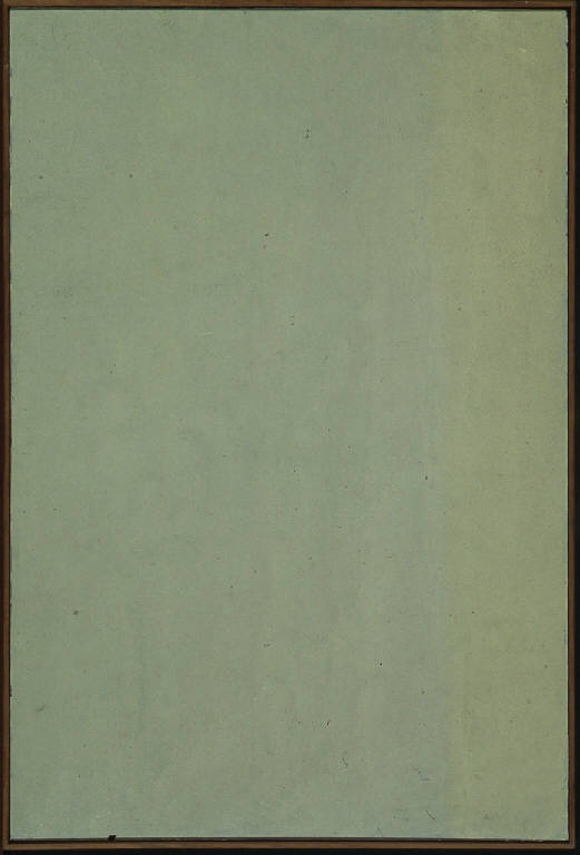 - NOTIZIE STORICO CRITICHE La produzione dell'89 è una delle più variegate dell'intero percorso espressivo di Congdon, allineando, nel giro di pochi mesi, toni e registri apparentemente divergenti. In tale contesto la novità di maggior rilievo è rappresentata da una serie di opere pressoché monocrome, in cui assistiamo alla pratica sparizione di ogni segno: non solo delle incisioni nel colore, ma anche delle stesse sobrie partiture in aree di diversa qualità cromatica e perfino delle smagliature che solitamente lasciano trapelare il nero del fondo. D'altra parte, lo strato del colore si fa più sottile, riducendo di molto gli effetti materici, mentre i movimenti della spatola risultano appena percepibili. Ma nell'apparente vuoto di questi dipinti si possono ancora cogliere, benché ad un livello quasi subliminale, velature di colore, variazioni di tinte, passaggi tonali, che danno movimento e radianza luminosa alla superficie pittorica. Nel "Nome di Maria", ad esempio, il colore perlaceo del dipinto, apparentemente uniforme, rivela una banda chiarissima, tendente al giallo-verde, che percorre verticalmente il lato destro, animando segretamente l'intera superficie. Il motivo della banda laterale è del resto molto frequente nelle opere di questi anni, sebbene, in questo caso, l'artista sostituisca alle nette partiture delle diverse aree cromatiche una loro delicata fusione che manifesta la tenace preoccupazione a risolvere lo spazio naturale nell'immaterialità della luce. L'opera fu dipinta il 12 settembre, festività del Nome di Maria, a cui allude il titolo. Anche in altre occasioni (si vedano in proposito "Janua Coeli" e "Virgo Potens") Congdon associa ad un quadro privo di riferimenti figurativi un titolo tratto dalla liturgia mariana.