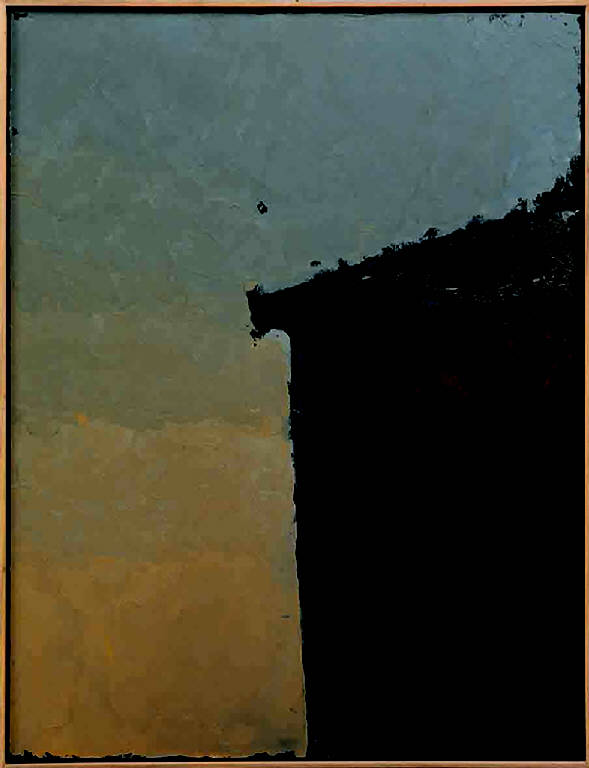 - NOTIZIE STORICO CRITICHE Può essere utile accostare alle versioni del '91 altre due dell'anno successivo, dipinte tra l'estate e l'autunno: in Alba monastero, Congdon torna a isolare un particolare dell'edificio - un angolo con tetto e cornicione - stagliandolo contro un cielo le cui tinte sfumano delicatamente dall'arancione chiaro al grigio. Nel suo silenzio sospeso, l'opera si carica di una tensione drammatica, creata dal contrasto tra la dolcezza dello sfondo e la scura, ferrigna e spigolosa sagoma del monastero.