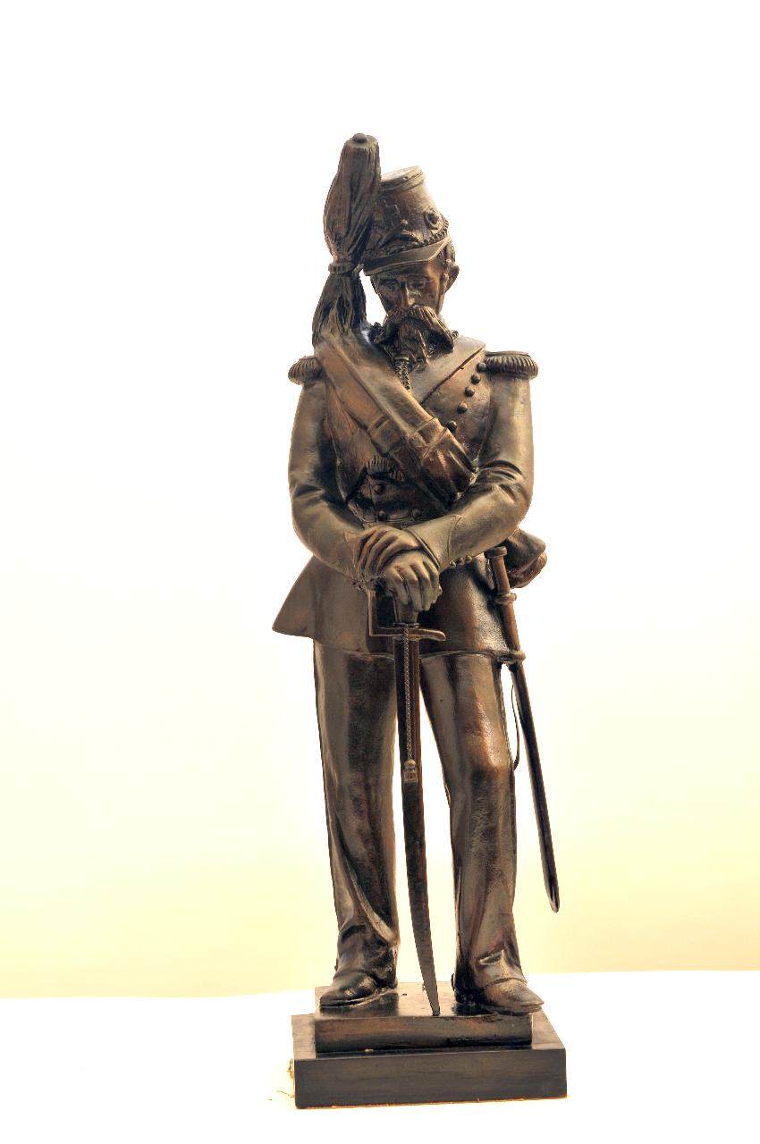 Artigliere in uniforme del 1848. Artigliere in posizione di riposo