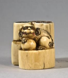 - NOTIZIE STORICO CRITICHE Una simile composizione caratterizza un pezzo illustrato da Forman - Vilímová - Bohácková (1960, n. 2); analogo stile anche per un esemplare nel British Museum di Londra (Barker - Smith 1976, n. 119), per uno pubblicato dal Noetzel (1981, n. 23), per uno illustrato da Schwarz (1992, n. 303), per uno nel Museo Nazionale di Cracovia (Japanese Art Cracow 1994, p. 62, n. 45) e per un pezzo nella collezione Trumpf nel Linden-Museum di Stoccarda (Jirka-Schmitz 2000b, p. 183, n. 344). Kokusai di Asakusa (1835-1894) realizzò un certo numero di netsuke simili a questo della collezione Lanfranchi in onore del suo maestro Gyokuyosai Mitsuhina che era specializzato in questo tipo di composizioni (Ducros 2006, p. 320, fig. 519).