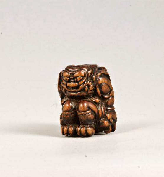 - NOTIZIE STORICO CRITICHE Questo pezzo della collezione Lanfranchi esemplifica un tipo di composizione abbastanza diffuso tra i netsuke che raffigurano Raiden: si veda, ad esempio, un esemplare per qualche verso analogo al nostro nel Victoria & Albert Museum di Londra, firmato Ikko della scuola di Tsu, e datato alla prima metà del XIX secolo. Possiamo presumere che l'opera qui presentata vada datata all'inizio dell'Ottocento, e che Kozan (?) sia un artista attivo nell'area di Tsu.