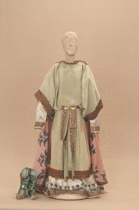 Costume di nobile greco di epoca romana per il personaggio del Re Magio Gaspare composto da veste, mantello e calzari.