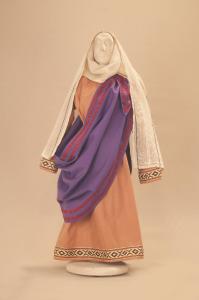 Costume di popolana composto da veste, soggolo, velo, mantello e cintura.