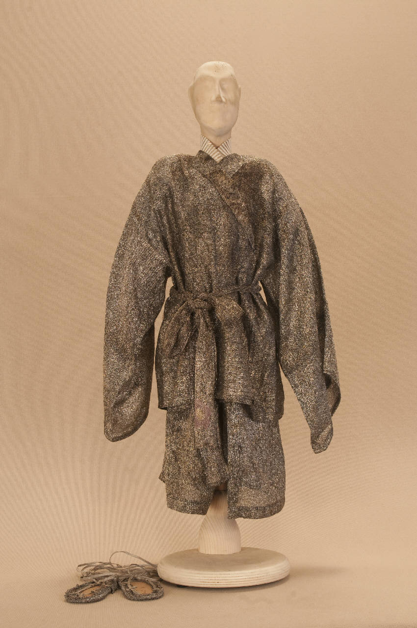Costume fantastico composto da pantaloni, giacca, collo, fascia e sandali.