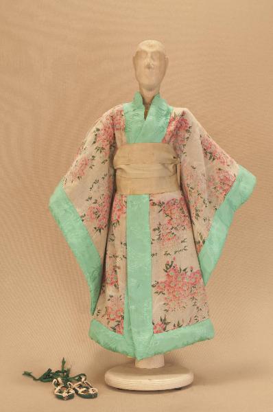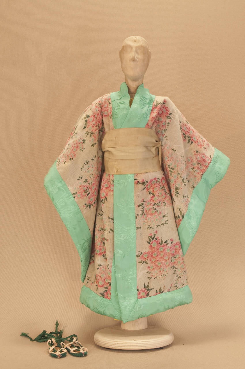 Costume da geisha composto da kimono, obi, veste e sandali.