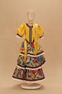 Costume da donna spagnola composto da gonna, corpino e scialle.