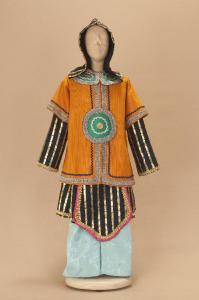 - NOTIZIE STORICO CRITICHE Si completa con elmo e scarpe. Il costume è stato realizzato per "La Lampada di Aladino", uno spettacolo che nasce come riduzione teatrale per marionette nel 1994. L¿argomento è tratto dalla fiaba "Aladino e la lampada meravigliosa", appendice della raccolta "Le Mille e Una Notte". Lo spettacolo di Eugenio Monti Colla, andato in scena in prima mondiale al Festival di Spoleto con musiche di Danilo Lorenzini, snoda il racconto in tredici quadri di ambientazione cinese come indicato nella fiaba d¿origine e narra l¿evoluzione del protagonista da giovinetto a uomo maturo attraverso vicende di carattere fantastico e simbolico.
