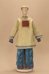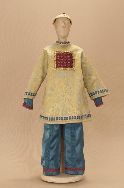 - NOTIZIE STORICO CRITICHE Si completa con scarpe. Il costume è stato realizzato per "La Lampada di Aladino", uno spettacolo che nasce come riduzione teatrale per marionette nel 1994. L¿argomento è tratto dalla fiaba "Aladino e la lampada meravigliosa", appendice della raccolta "Le Mille e Una Notte". Lo spettacolo di Eugenio Monti Colla, andato in scena in prima mondiale al Festival di Spoleto con musiche di Danilo Lorenzini, snoda il racconto in tredici quadri di ambientazione cinese come indicato nella fiaba d¿origine e narra l¿evoluzione del protagonista da giovinetto a uomo maturo attraverso vicende di carattere fantastico e simbolico.