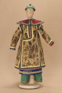 Costume da funzionario imperiale cinese composto da pantaloni, gonna, veste, collo e cappello.