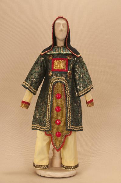 - NOTIZIE STORICO CRITICHE Si completa con stivaletti ed elmo.Il costume è stato realizzato per "La Lampada di Aladino", uno spettacolo che nasce come riduzione teatrale per marionette nel 1994. L¿argomento è tratto dalla fiaba "Aladino e la lampada meravigliosa", appendice della raccolta "Le Mille e Una Notte". Lo spettacolo di Eugenio Monti Colla, andato in scena in prima mondiale al Festival di Spoleto con musiche di Danilo Lorenzini, snoda il racconto in tredici quadri di ambientazione cinese come indicato nella fiaba d¿origine e narra l¿evoluzione del protagonista da giovinetto a uomo maturo attraverso vicende di carattere fantastico e simbolico.