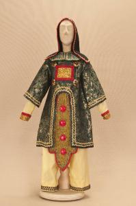 - NOTIZIE STORICO CRITICHE Si completa con stivaletti ed elmo.Il costume è stato realizzato per "La Lampada di Aladino", uno spettacolo che nasce come riduzione teatrale per marionette nel 1994. L¿argomento è tratto dalla fiaba "Aladino e la lampada meravigliosa", appendice della raccolta "Le Mille e Una Notte". Lo spettacolo di Eugenio Monti Colla, andato in scena in prima mondiale al Festival di Spoleto con musiche di Danilo Lorenzini, snoda il racconto in tredici quadri di ambientazione cinese come indicato nella fiaba d¿origine e narra l¿evoluzione del protagonista da giovinetto a uomo maturo attraverso vicende di carattere fantastico e simbolico.
