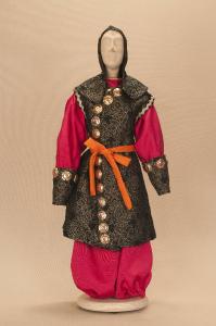 - NOTIZIE STORICO CRITICHE Si completa con stivaletti ed elmo. Il costume è stato realizzato per "La Lampada di Aladino", uno spettacolo che nasce come riduzione teatrale per marionette nel 1994. L¿argomento è tratto dalla fiaba "Aladino e la lampada meravigliosa", appendice della raccolta "Le Mille e Una Notte". Lo spettacolo di Eugenio Monti Colla, andato in scena in prima mondiale al Festival di Spoleto con musiche di Danilo Lorenzini, snoda il racconto in tredici quadri di ambientazione cinese come indicato nella fiaba d¿origine e narra l¿evoluzione del protagonista da giovinetto a uomo maturo attraverso vicende di carattere fantastico e simbolico.