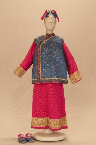 Costume da donna orientale composto da veste, giubba, acconciatura e scarpe