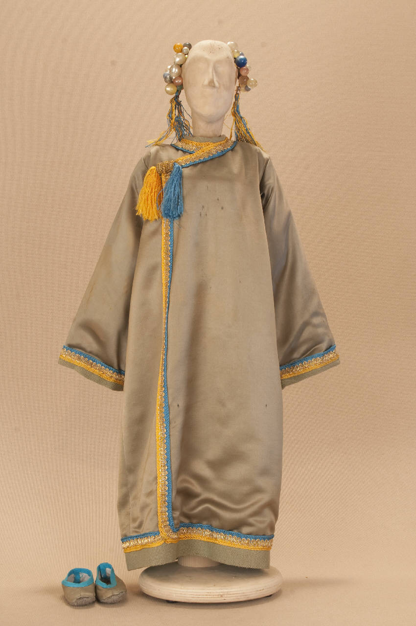 - NOTIZIE STORICO CRITICHE Il costume è stato realizzato per lo spettacolo "La Lampada di Aladino", che nasce come riduzione teatrale per marionette nel 1994. L¿argomento è tratto dalla fiaba "Aladino e la lampada meravigliosa", appendice della raccolta "Le Mille e Una Notte". Lo spettacolo di Eugenio Monti Colla, andato in scena in prima mondiale al Festival di Spoleto con musiche di Danilo Lorenzini, snoda il racconto in tredici quadri di ambientazione cinese come indicato nella fiaba d¿origine e narra l¿evoluzione del protagonista da giovinetto a uomo maturo attraverso vicende di carattere fantastico e simbolico.