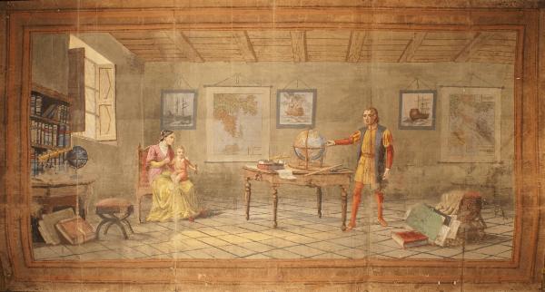 - NOTIZIE STORICO CRITICHE Lo spettacolo "Cristoforo Colombo" è stato scritto da Carlo II Colla nel 1898 a Biella, con scene di Leone Mens e musica del maestro Levis Ramella. Si tratta del terzo kolossal con duecento personaggi del repertorio della Compagnia Marionettistica Carlo Colla e Figli che segue "Excelsior" e "Il giro del mondo in ottanta giorni", a celebrare il progresso e l'uomo di età positivista. Lo sviluppo drammaturgico segue le tappe fondamentali dell'impresa del navigatore genovese utilizzando la formula del ballo si Scuola Scaligera ed alterna parti mimate parti danzate. Nel 1948 fu realizzata una versione cinematografica dello spettacolo. L'azione teatrale di Carlo II Colla segue l'impresa del navigatore genovese dal suo arrivo al Convento di S. Maria della Rabida, alla discussione del suo progetto di circumnavigazione con i dotti dell'Università di Salamanca sino alla richiesta di protezione fatta ai sovrani a Santa Fè durante l'assedio della città di Granada. L'intercessione della regina Isabella fa sì che la spedizione possa salpare dal porto di Palos. Lo spettacolo proseguiva con l'ammutinamento dei marinai, lo sbarco sull'isola di Guanahani sino al rientro in Spagna di Colombo per subire un processo. La concezione ottocentesca in cui era nato lo spettacolo prevedeva che al protagonista morente si offrisse la visione della gloria futura.\nNel 1992, da una coproduzione con il Teatro alla Scala, nacque un nuovo allestimento che univa a questa azione mimica, alcune parti cantate dell'opera di Franchetti.