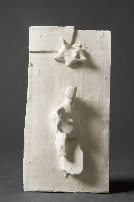 Forma bianca, da una formella a rilievo emergono, fortemente rilevati, una Madonna con Bambino con le braccia appena accennate, sormontata da una stella stilizzata e aggettante. La stella poggia parzialmente su un frammento di cartone aggiunto nell'angolo in alto a sinistra. Il rilievo in gesso è stato coperto da uno spesso strato di colore bianco opaco, steso a spatola.