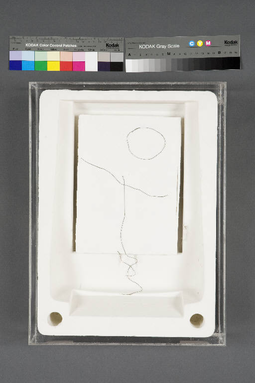 - NOTIZIE STORICO CRITICHE Composizioni, create con materiali di recupero, cartoni, vetri, fili, legni, ferri, colori, che colpiscono per l'elementarità di immagine, di tecniche, di materiali. Per la realizzarione Padre Costantino usava solitamente una tempera da muro chiamata "Ducotone", filo di refe, una colla trasparente specifica per vetro detta "Peligom" della ditta Pelikan.\nPadre Costantino, che utilizza materie povere, asserisce: "Voglio costruire con materie povere come il pane".\nL'opera intitolata "Spazio Mistico Dodici" è conservata entro una teca in plexiglass, quindi entro una scatola con decori argentei su fondo blu.