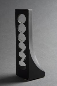 Monolito di sezione quadrata alla base e triangolare al vertice con sequenza di fessure.