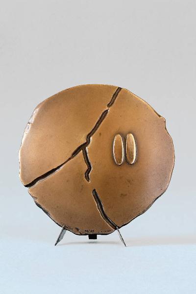 Medaglia con bordi irregolari e incisione a Y rovesciata con due piccoli ovali a bassorilievo affiancati. Multiplo n. 31/45. Realizzato dalla fonderia Johnson.
