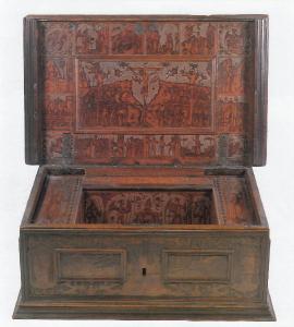 Cassetta decorata internamente con scene della Passione di Cristo.