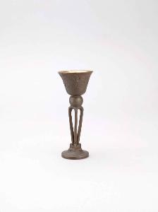 Calice a sezione circolare con bocca espansa, posante su alto piede con base circolare.