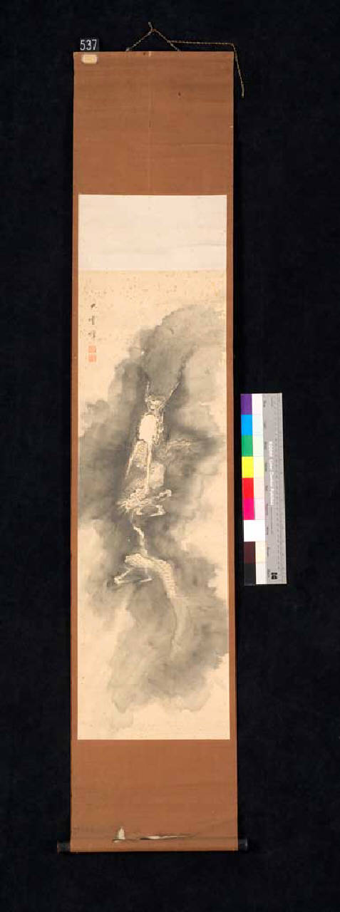Il dipinto, nel formato del rotolo verticale da appendere (kakemono), è stato eseguito a inchiostro di china su carta. Raffigura un drago (ryu) che vola tra le nuvole. Ha tradizionale cornice in seta con bacchette in legno.