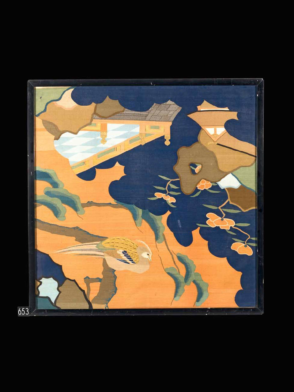 - NOTIZIE STORICO CRITICHE Giussani n. 27. Montato su cornice in vetro. Probabilmente fukusa (confezione per doni). Verifica 1946. (Descrizione e commenti in Archivio Museo).