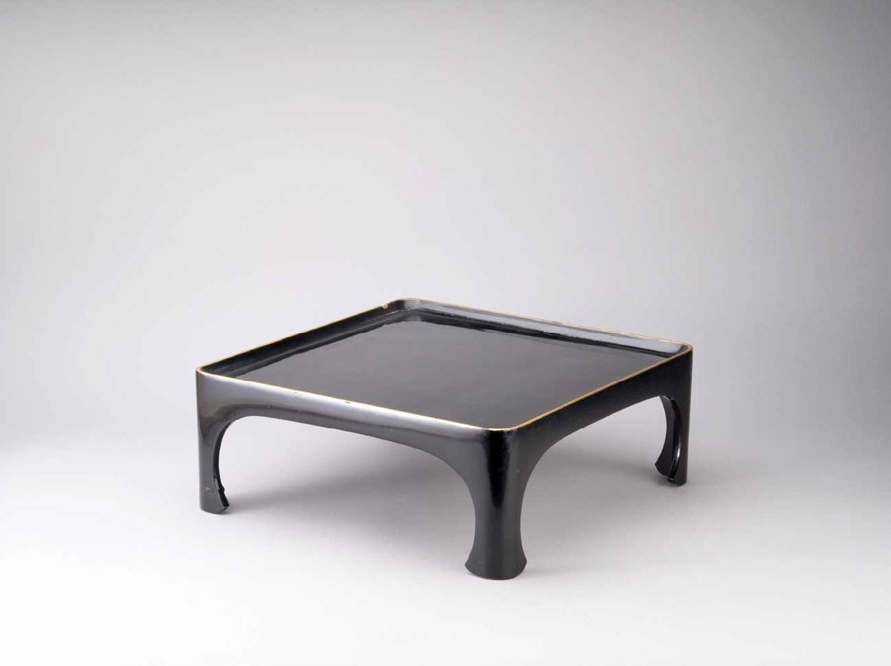 Tavolino (sowazen) a sezione quadrata, laccato nero e profilato in oro, privo di ulteriori decorazioni.
