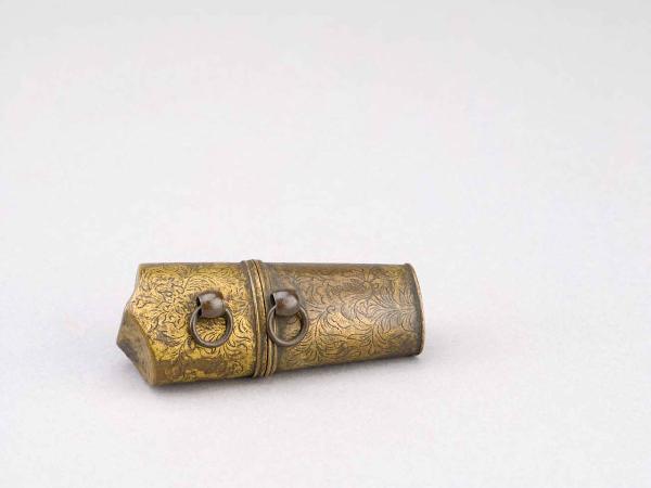 Netsuke a forma di faretra, decorata a incisione sull'esterno con motivi fi tralci floreali.