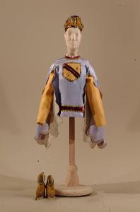 Costume per paggio di foggia rinascimentale composto da veste, scarpe e cappello