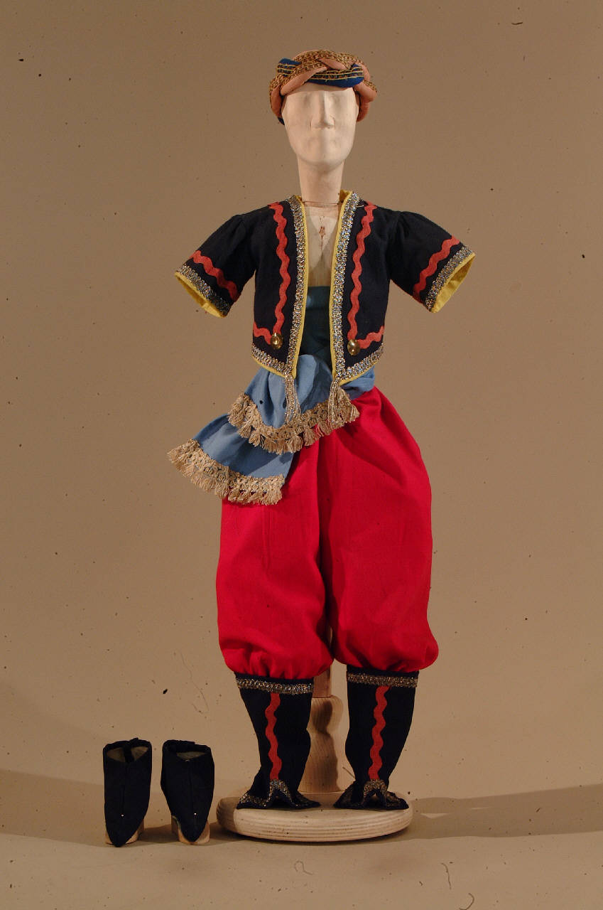 costume per militare di foggia orientale composto da pantaloni, bolero, fascia, turbante, uose e scarpe